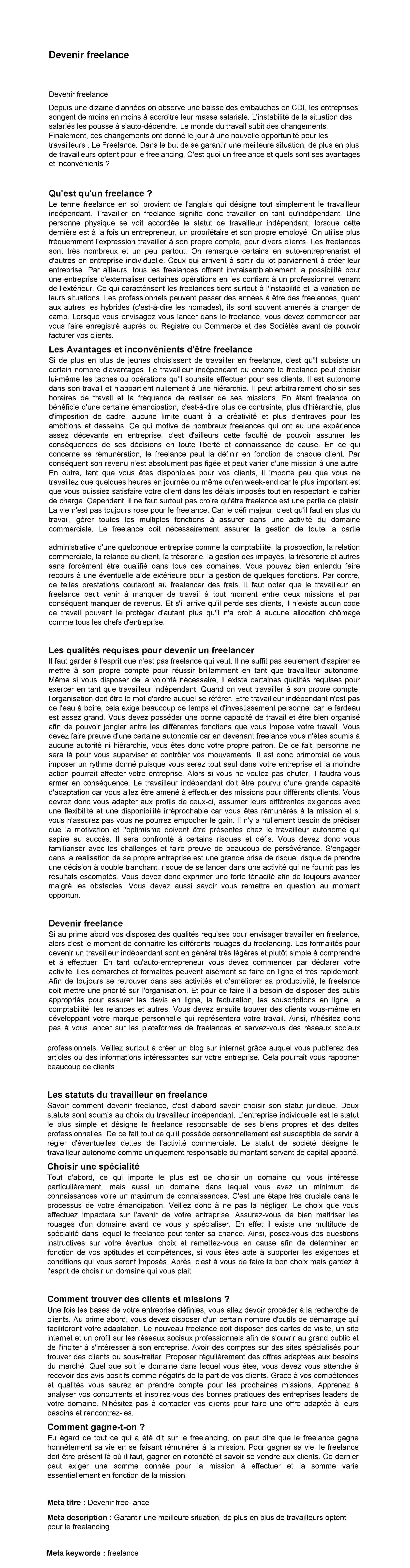 Comme je l’ai indiqué en début d’article, lorsque j’ai donné mon avis sur Scribeur, vous trouverez ci-dessous le résultat de la commande pour vous faire votre propre idée. Si vous consultez le texte final sur l’article pour devenir freelance, vous verrez qu’il est en grande partie différent. En effet, j’ai apporté plusieurs modifications.